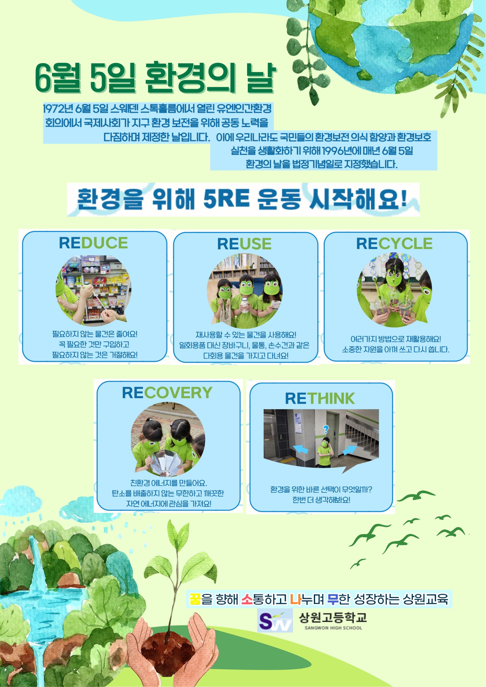 5RE는 환경 보호를 위해 우리가 일상 생활에서 실천할 수 있는 다섯 가지 중요한 방법을 의미합니다.